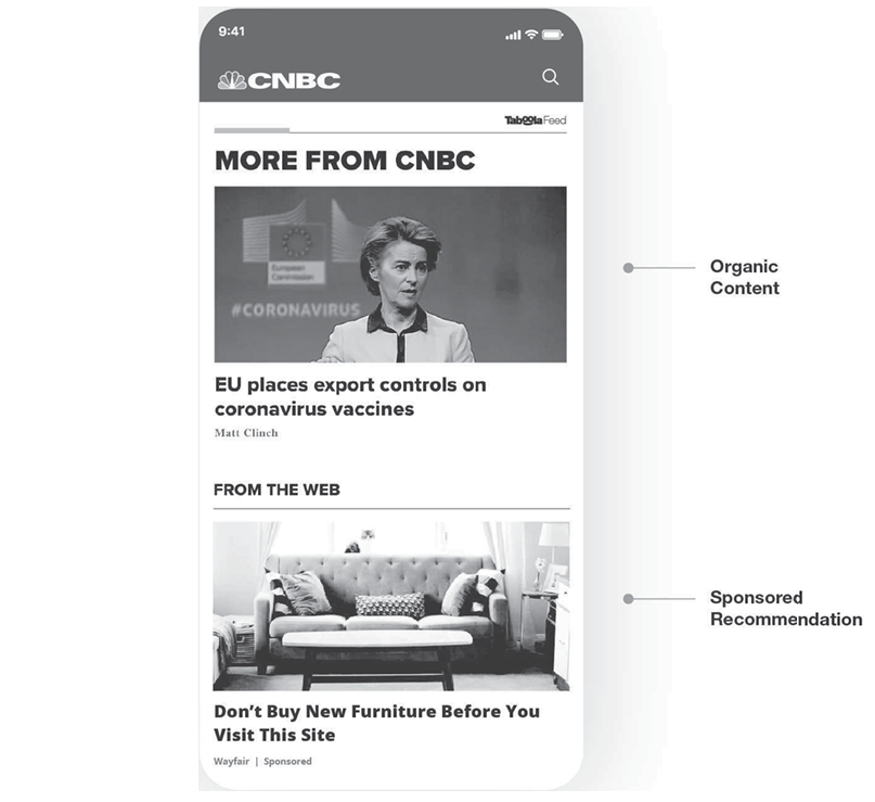 I knew I'd be able to find a screenshot on Yahoo because, in 2022, they signed a 30-year exclusive commercial agreement with Yahoo to power native ads on all of their digital properties. To demonstrate that I'm not being selective, this image is taken from Taboola's 2023 annual report, i.e. this is what the product is supposed to look like.
